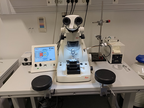 Provides the possibility for trimming and sectioning an area of a specimen tagged with GFP