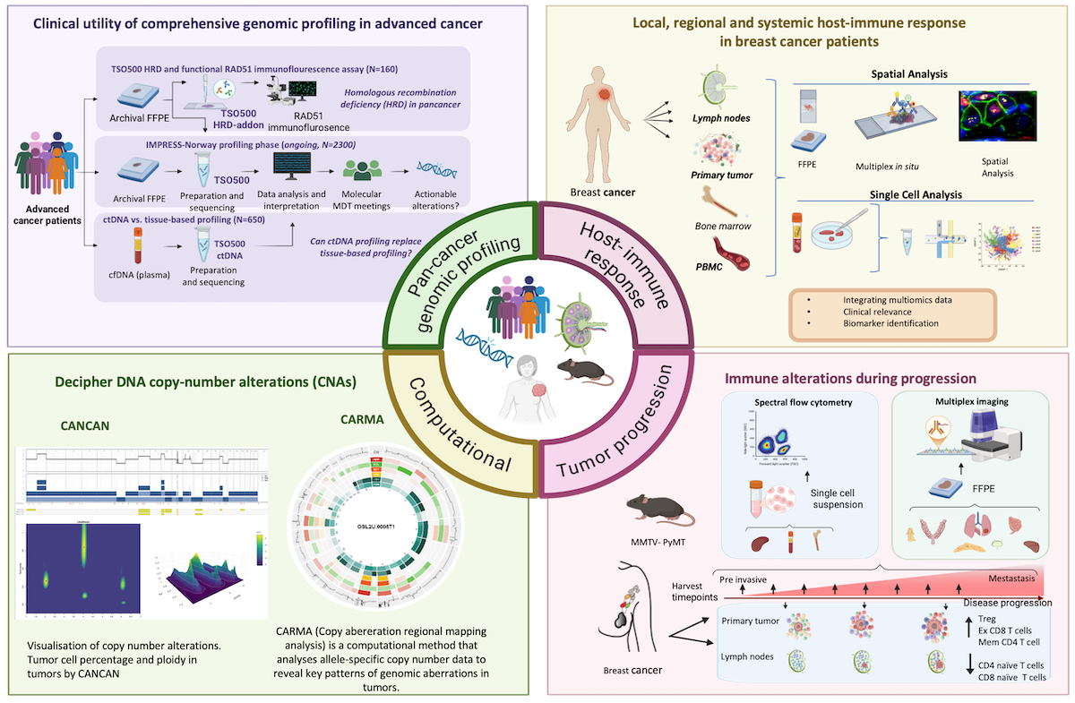 IMPRESS-Norway is a national precision medicine clinical trial evaluating efficacy of targeted anti-cancer drugs for advanced cancer patients based on potentially actionable biomarkers revealed by molecular profiling. For patients included in IMPRESS-Norway, we will in this subproject perform comprehensive genomic profiling (CGP) using circulating tumor DNA (ctDNA) in plasma from peripheral blood to identify actionable biomarkers for treatment recommendation. The project aims to identify patient groups where CGP of ctDNA is beneficial compared to tissue biopsies, and evaluate if liquid biopsy analyses based on ctDNA can be implemented into the public health care system.
