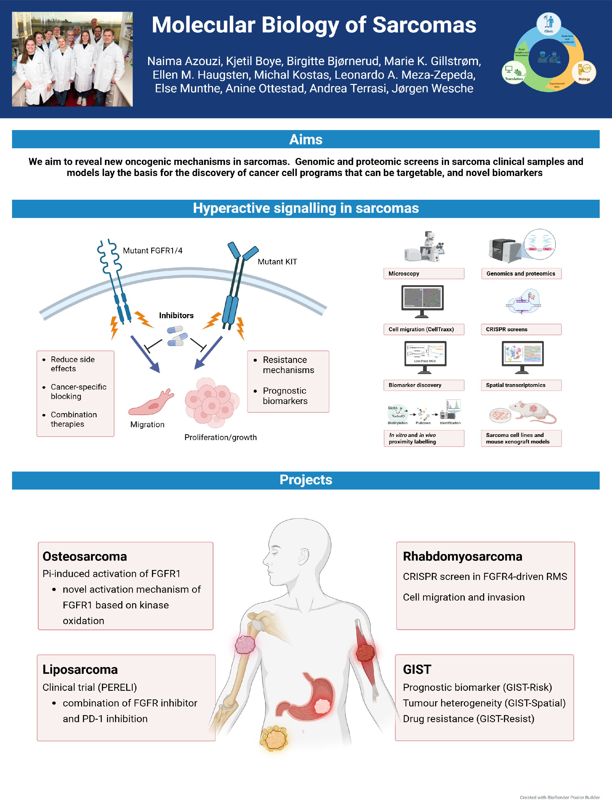 Our group has for many years investigated mechanisms involved in the development and progression of sarcomas, with focus on cell biology and genomics. The Norwegian Radium Hospital is a national centre of competence on this kind of tumours, and our research is done in close collaboration with our clinical colleagues.