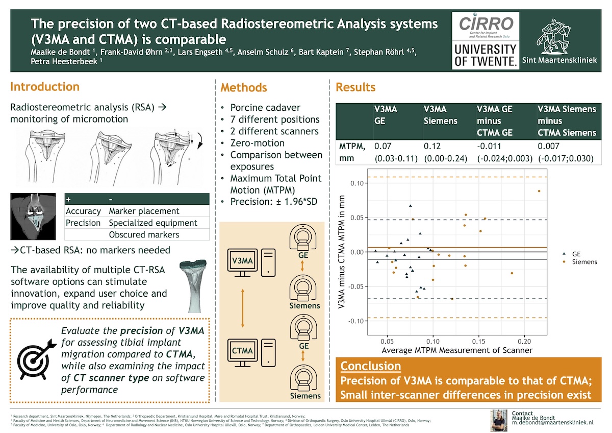 | The precision of two CT-based Radiostereometric Analysis systems (V3MA and CTMA) is comparable |