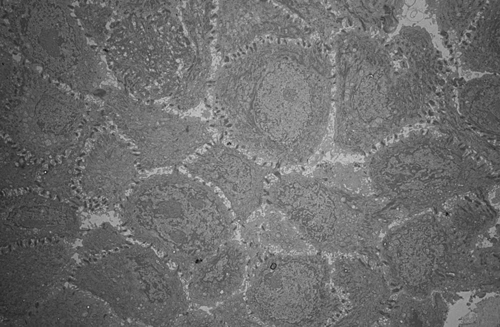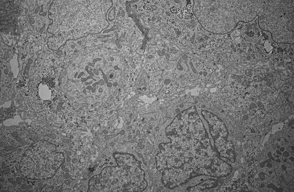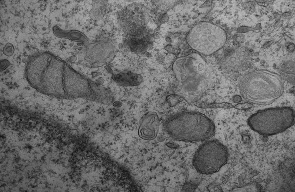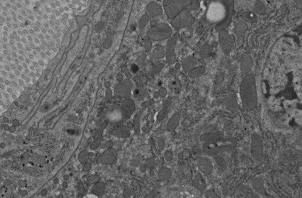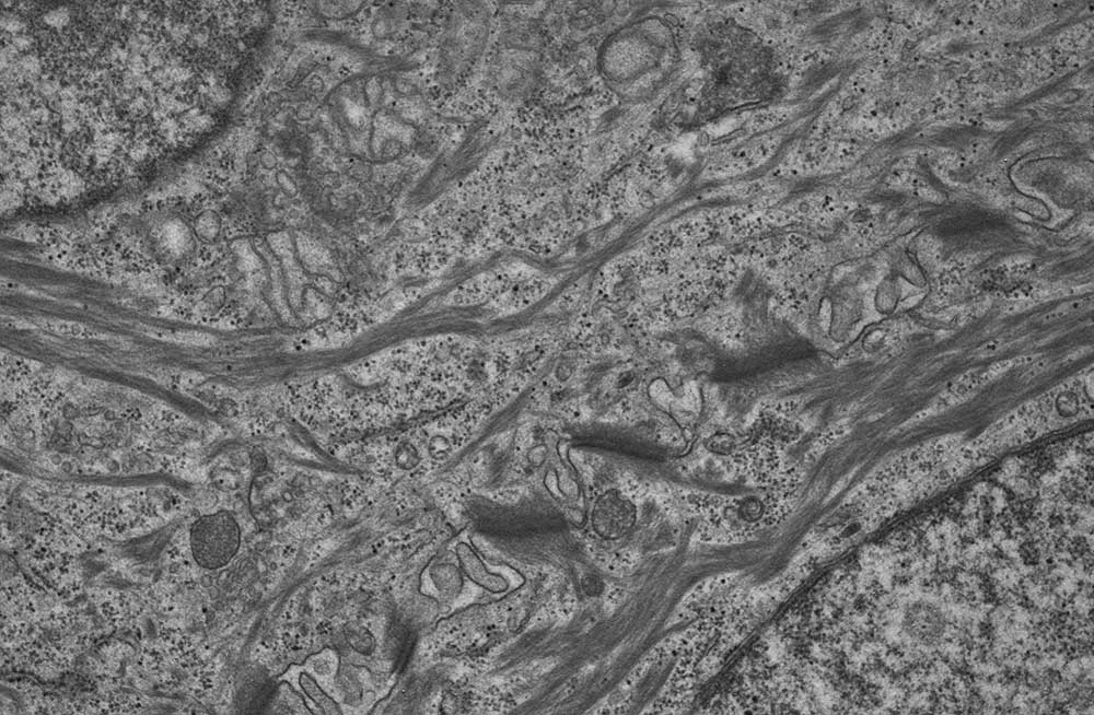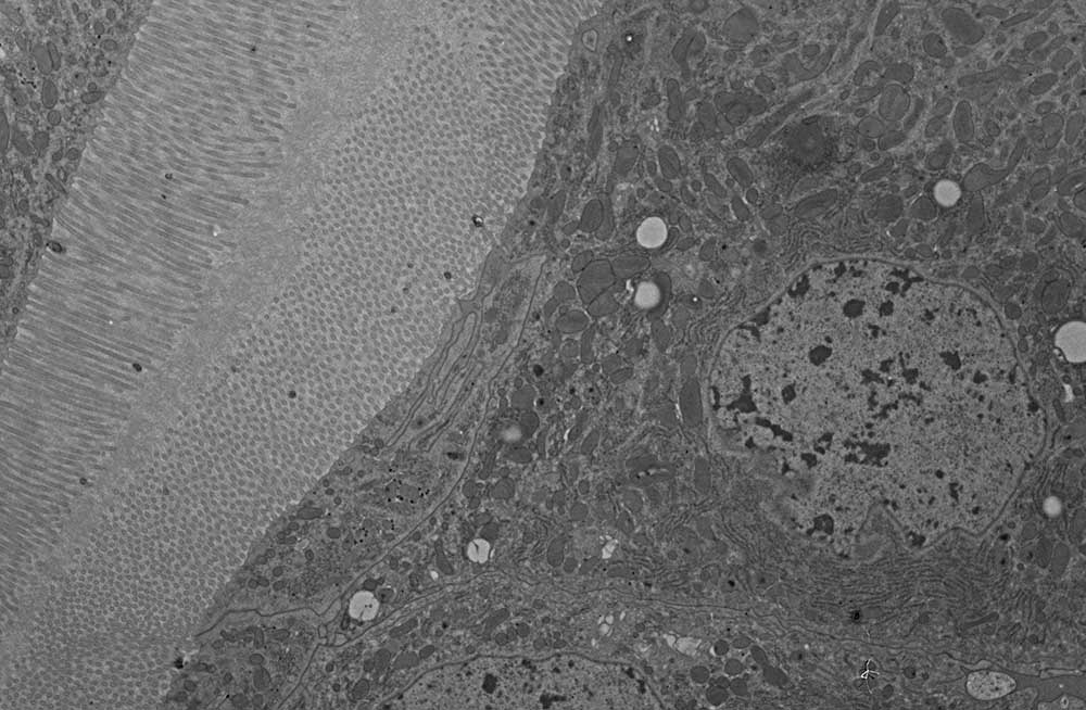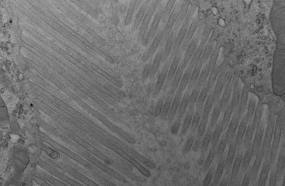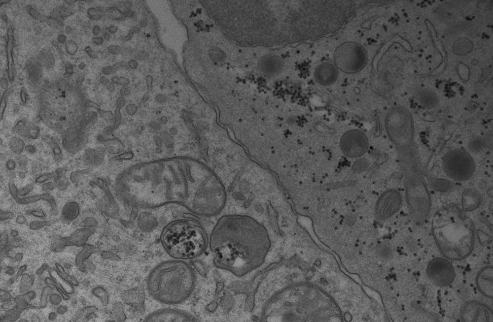Routine preparation of biological material for classical transmission electron microscopy (TEM) through fixation, embedding in epon and sectioning. The cells or tissue is fixed with glutaraldehyde and post-fixed with osmium tetroxide. Contrast is added in the form of heavy metals using Uranyl acetate and if necessary, also Tannic acid. Sample is dehydrated with graded series of ethanol and embedded in Epon. After polymerization the specimen is sectioned in an ultra-microtome to cut sections of varying thickness, suitable for the microscopy technique we want to use.