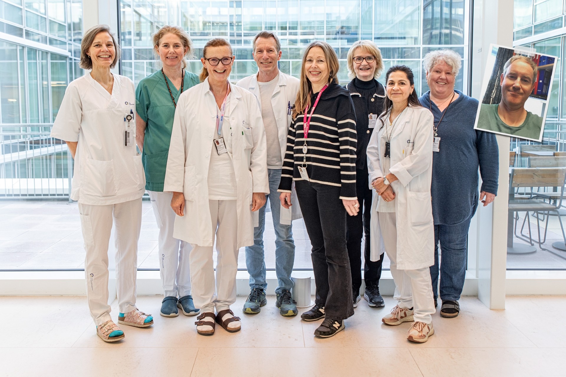 Anne Alexandra Østgaard, study nurse; Helle Kristine Skjerven, surgeon, Head of the Section for Breast and Endocrine Surgery; Randi Ruud Mathiesen, oncologist, Head of the Centre for Breast Cancer, Head of the Section for Breast Oncology; Bjørn Naume, oncologist, Head of the Clinical Research Group for Breast Cancer; Therese Sørlie, researcher, Head the Department for Cancer Genetics; Vigdis Sandviken Opperud, consultant; Linda Romundstad, radiologist, Department head at the Breast Diagnostic Centre; Eva Mari A. Harboe, cancer nurse, course coordinator; Jon Lømo, pathologist with specialist responsibility for breast. Photo: Per Marius Didriksen Large version